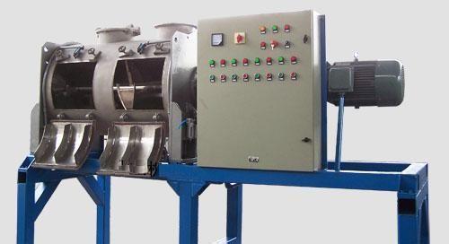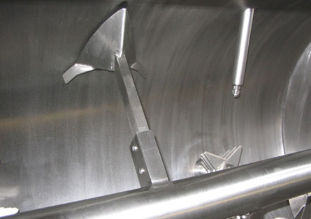 結團性物料如纖維或受潮結團、加液凝聚的粉料,通過在犁刀混合機內安裝的高速飛刀,結合犁刀攪拌器攪拌物料時形成的對流循環作用,對結團性物料進行打散、分離。
