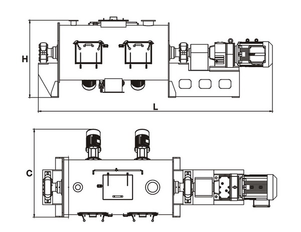 混合機根據物料性質、啟動方式、以及攪拌方式配置不同能力、不同功率、不同輸出轉速的驅動裝置。驅動電機選擇有:普通電機、防暴電機、變頻電機、**節能電機、高防護等級電機、以及異電壓下的電機;常用的減速機:R、K、F系列齒輪減速機、擺線針輪減速機、通用型齒輪減速箱、行星齒輪減速器;常用的連接方式:直聯式、皮帶輪連接、液力耦合器連接。