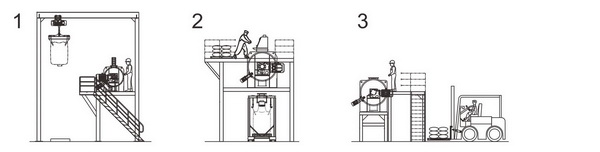 配置2:采用真空上料方式,地面投料,混合出料后采用噸帶包裝機;