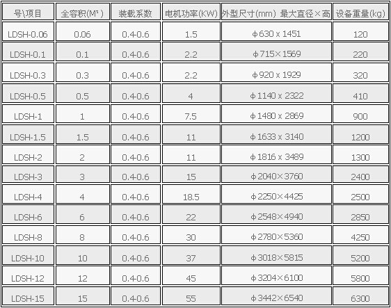 注:* 表中混合量是以比重為1的粉料為介質(zhì)所測數(shù)據(jù),選型應(yīng)根據(jù)產(chǎn)品的目數(shù)、比重等參數(shù)進行計算。